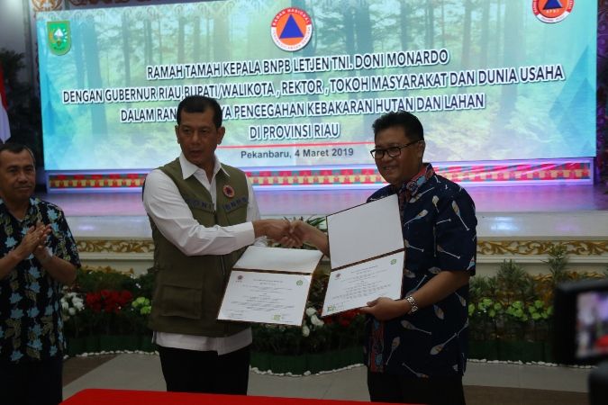 Pada pertemuan tersebut, Kepala BNPB-RI Letjen Doni Monardo, menyambut baik komitmen dari Gubernur Riau. “Saya sangat apresiasi terhadap Gubernur Riau serta pihak yang memiliki komitmen dalam memperhatikan lingkungan seperti Universitas Riau dalam bidang penelitian, serta masyarakat yang peduli terhadap lingkungan”. (rls)
