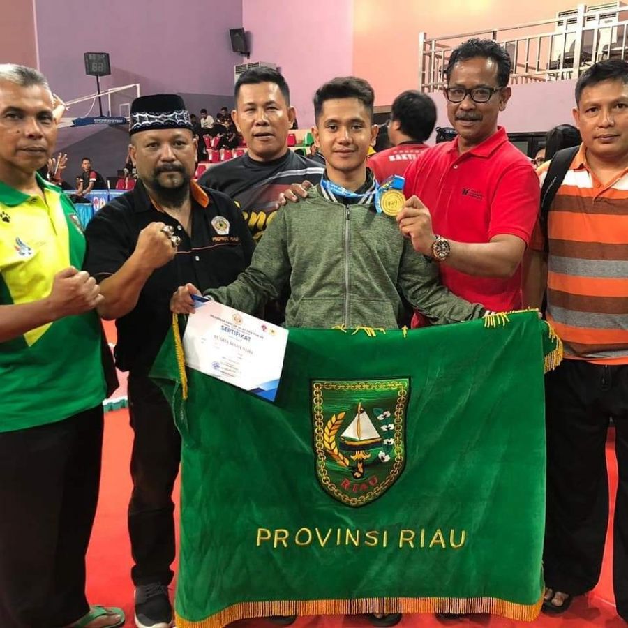 Riaupunya.com -- Yudha Mahendri, mahasiswa Fakultas Ilmu Budaya Universitas Lancang Kuning, berhasil meraih medali emas dalam kejuaraan pencak silat Pra PON (pekan olahraga nasional) XX yang diadakan di gor Cempaka Putih, Jakarta.