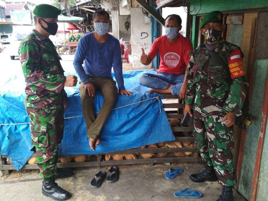 RIAUPUNYA--Babinsa selaku garda terdepan di kelurahan memerangi coronavirus disease (Covid-19) terus melakukan sosialisasi dan imbauan tentang pentingnya menerapkan disiplin protokol kesehatan dalam segala aktifitas.