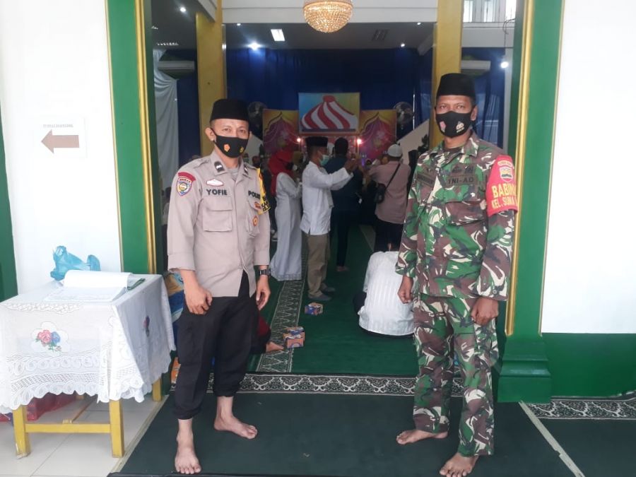 Kedua pembina wilayah teritorial ini meminta warga yang memasuki masjid Darul Amal tempat kegiatan MTQ di gelar untuk menjalankan disiplin protokol kesehatan.