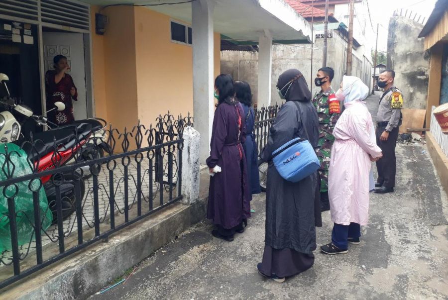 Babinsa Koramil 02 Kota Dampingi Nakes Gelar Tracing Warga Baru