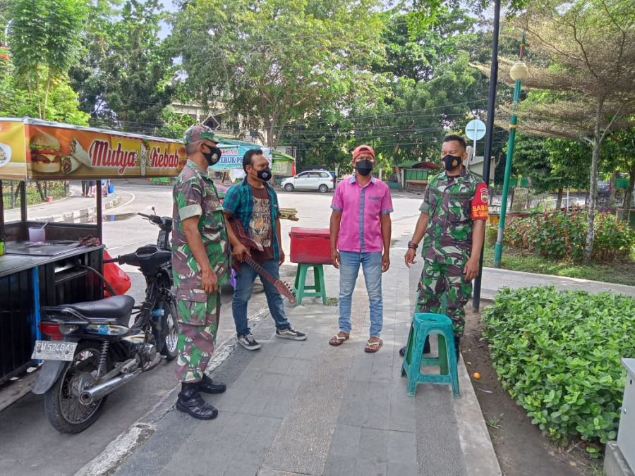 RIAUPUNYA----Babinsa koramil 02 Kota Peltu Andry Rasyid dan Kopda Ario Diansah mengimbau para pedagang dan masyarakat disekitar pedagang di RTH Kaca Mayang agar memperhatikan kebersihan lingkungan.