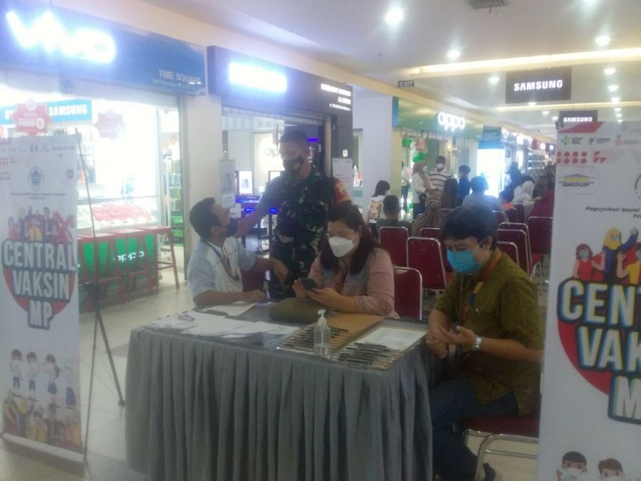Sabtu ( 30/42022), giliran Serka TM Sihite memonitor pelaksanaan vaksinasi di Mall Pekanbaru di jalan Sudirman Kelurahan Kota Tinggi Kecamatan Pekanbaru Kota.