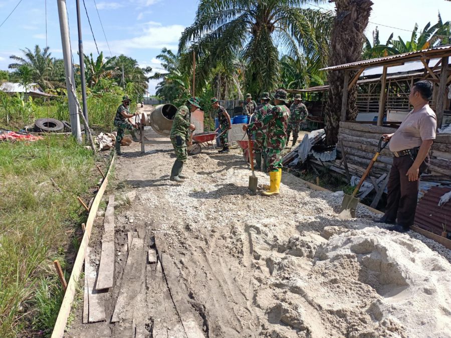 Cor Jalan Sepanjang 500 Meter Babinsa dan Satgas TMMD Mendapat Apresiasi Warga