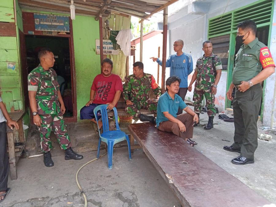 RIAUPUNYA-- Babinsa Kelurahan Simpang Empat Kopda Ario Diansah mengajak masyarakat di kampung Pancasila untuk selalu menjaga kebersihan dan kesehatan.