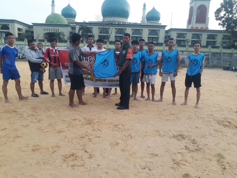 Babinsa Serahkan Bantuan Rompi kepada Tim Futsal Sumahilang