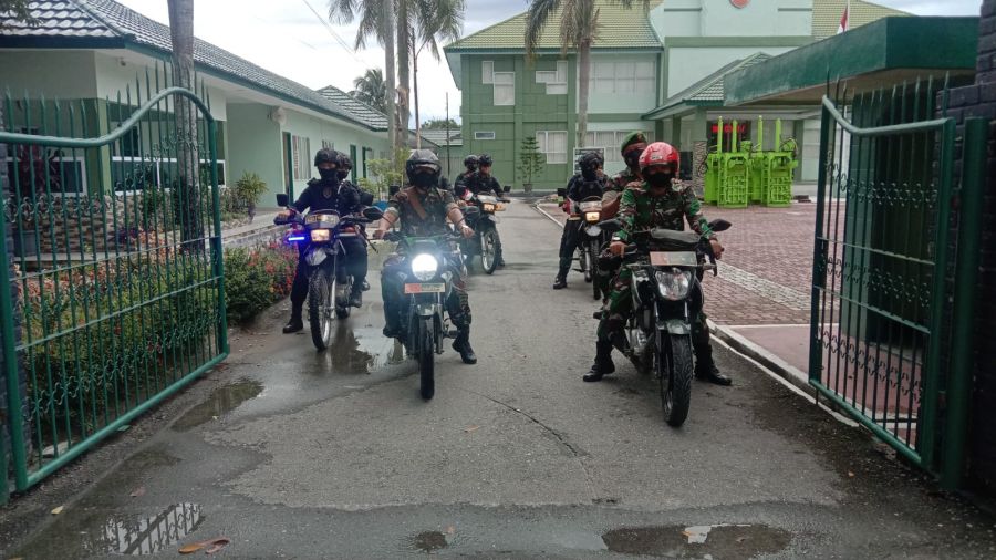 Babinsa dan tim gabungan dengan menggunakan sepeda motor berkeliling kota dan masuk ke sejumlah gang sempit dan pusat keramaian.