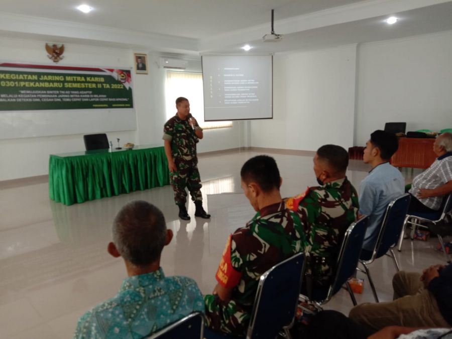RIAUPUNYA-- Mewujudkan pembinaan territorial TNI AD yang adaptif, Kodim 0301 Pekanbaru menggelar kegiatan pembinaan jaring mitra karib semester II tahun 2022 Aula Makodim di jalan Ahmad Yani, Sabtu (12/11/2022).