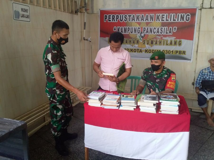 Babinsa Koramil 02 Kota Kodim 0301 Pekanbaru Buka Perpustakaan Keliling di kampung Pancasila