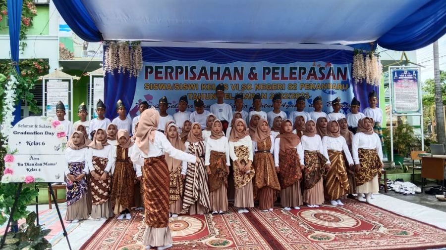 PEKANBARU, Riaupunya.com -- Sekolah Dasar Negeri (SDN) 82 Kecamatan Sail Pekanbaru melaksanakan perpisahan dan pelepasan siswa siswi kelas 6 tahun 2022 -2023 yang diadakan di halaman sekolah.