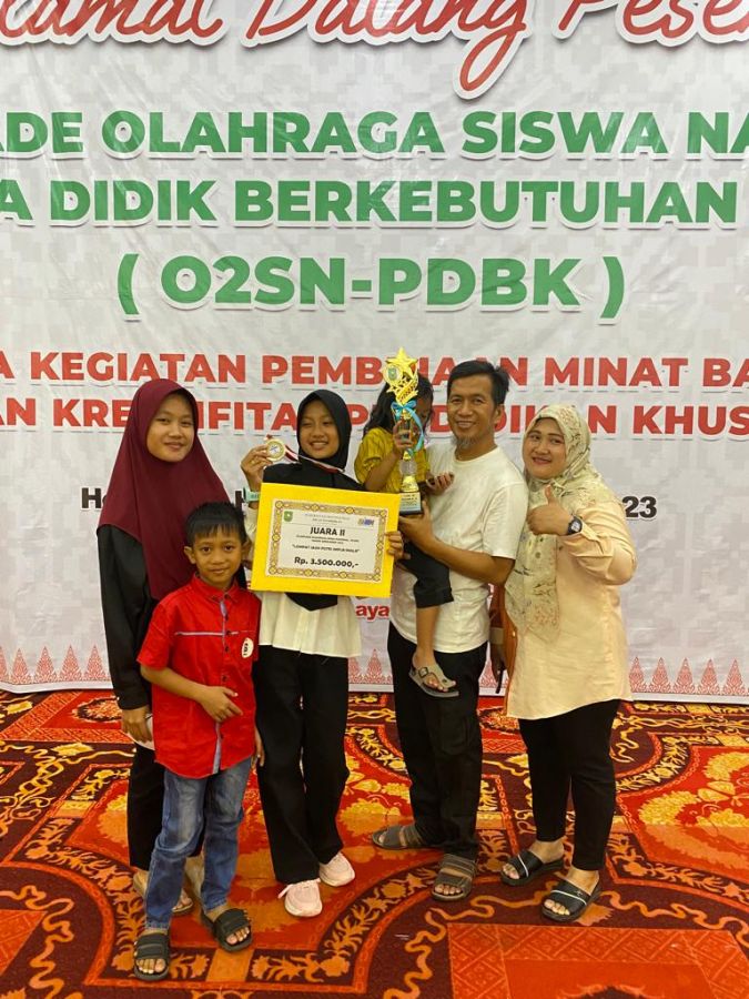 PEKANBARU, Riaupunya.com -- Atlet lompat jauh dari Kota Pekanbaru Muthia Syakira Ramla kembali mampu mempertahankan Medali Perak yang ia peroleh tahun lalu dalam kejuaran Olimpiade Olahraga Siswa Nasional Peserta Didik Berkebutuhan Khusus (O2SN-PDBK) tingkat Provinsi Riau yang digelar Disdik Riau di Pekanbaru, 24-27 Juli 2023.
