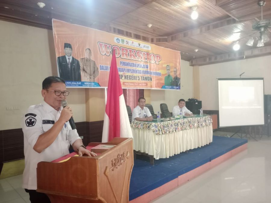 Kadisdikpora Rohul, didampingi Kabid SMP, Dafri, S.Ag, dalam sambutan nya berpesan pada panitia workshop agar panitia, yang notabene dari SMP N 5 agar menjalankan Surat Keputusan (SK) kegiatan sesuai fungsinya.