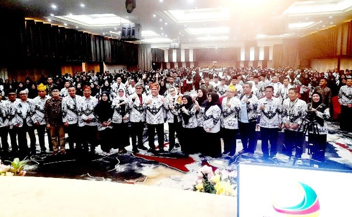 PEKANBARU -- Dihadiri ribuan guru, Konferensi Persatuan Guru Republik Indonesia (PGRI) XXIII Provinsi Riau, dibuka secara resmi oleh Pj Gubernur Riau SF Hariyanto, Sabtu 13 Juli 2024 pagi di Hotel Furaya Pekanbaru