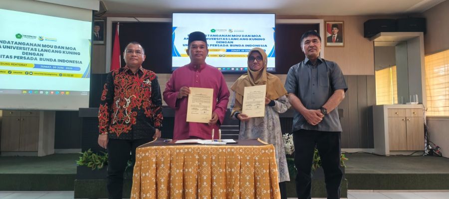 PEKANBARU (Riaupunya.com) - Universitas Lancang Kuning (Unilak) dan Universitas Persada Bunda Indonesia (UPBI) menandatangani perjanjian kerjasama pada hari Jumat, 20 Juni 2025, di gedung Rektorat.