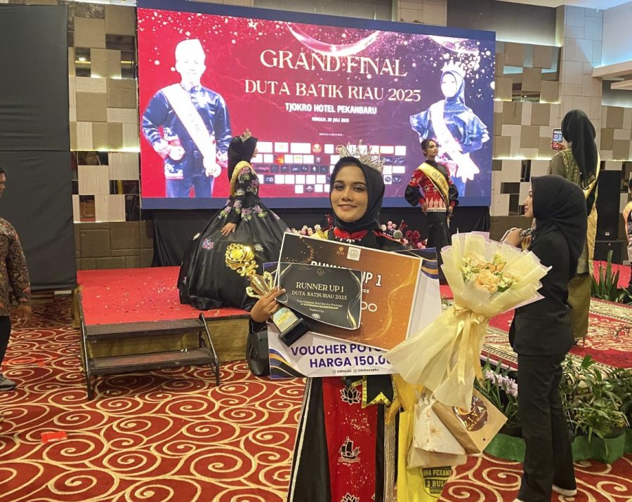 PEKANBARU (Riaupunya.com) -- Alifia Azzahra Hayati berhasil meraih prestasi membanggakan dan mengharumkan Univesitas Lancang Kuning Riau pada ajang Duta Batik Riau 2025. Mahasiswi Fakultas Hukum Unilak ini berhasil meraih runner up yang di selenggarakan oleh Regional Duta Batik Riau di Hotel Tjokro, 20 Juli 2025 lalu.
