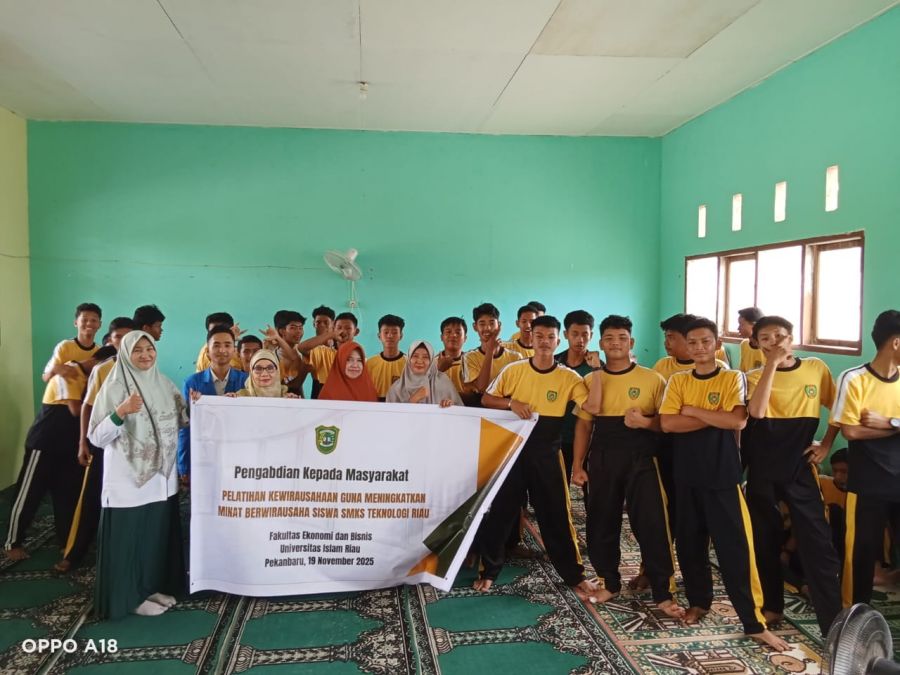 PEKANBARU (Riaupunya.com) -- Dalam rangka pelaksanaan Tri Dharma Perguruan Tinggi, tim dosen Fakultas Ekonomi dan Bisnis Universitas Islam Riau (FEB UIR) yang diketuai oleh Devi Kurniawati SP MM, melaksanakan kegiatan Pengabdian kepada Masyarakat di SMK Teknologi Riau pada Rabu 19 November 2025.