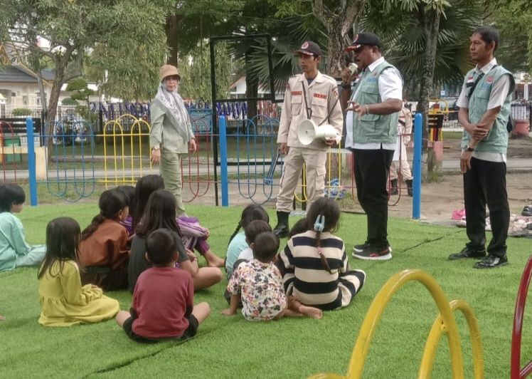 PEKANBARU (RiauPunya.com) -- Badan Penanggulangan Bencana Daerah (BPBD) Pekanbaru melaksanakan simulasi keselamatan untuk anak-anak yang berada di Ruang Terbuka Hijau (RTH) Kaca Mayang dan Tunjuk Ajar, Rabu 10 Desember 2025.