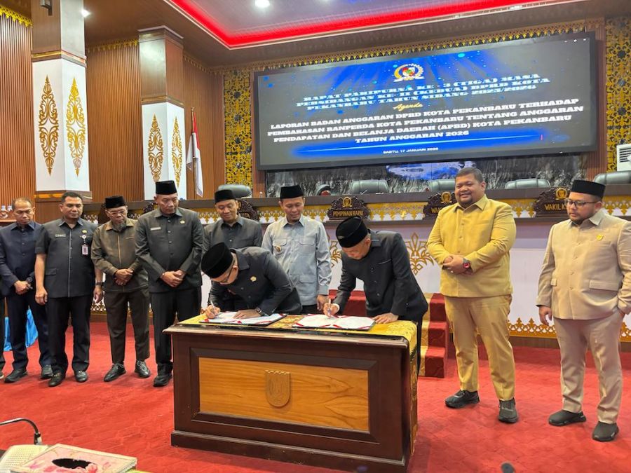 Pengesahan kemudian ditandai dengan penandatanganan berita acara oleh Wali Kota Pekanbaru Agung Nugroho bersama pimpinan DPRD Kota Pekanbaru.
