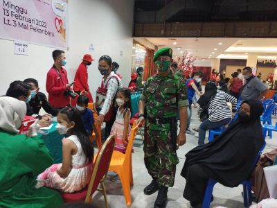 Babinsa Dampingi Masyarakat Vaksinasi di Mall Pekanbaru