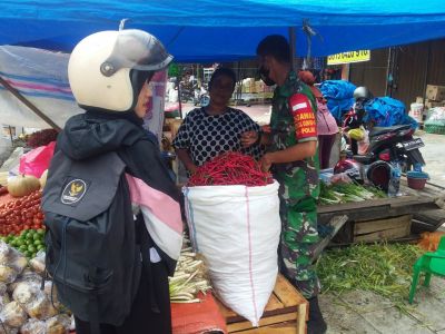 Babinsa Gelar Rutinitas Prokes di Pasar Agussalim