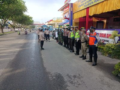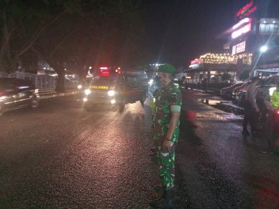RIAUPUNYA--Babinsa Koramil 02 Kota Serka TM Sihite melaksanakan rutinitas patroli wilayah dan komsos di Pasar Agussalim, Sabtu (16/7/2022)