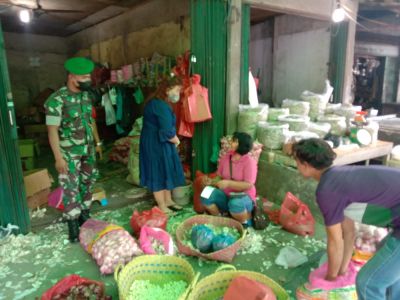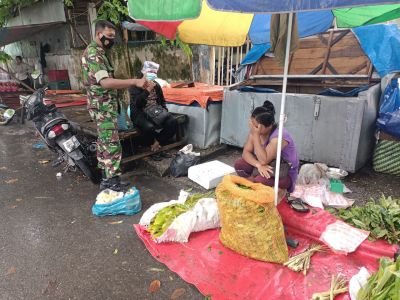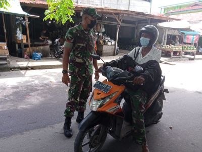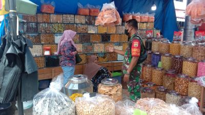 Babinsa Gelar Rutinitas Prokes di Pasar Agussalim