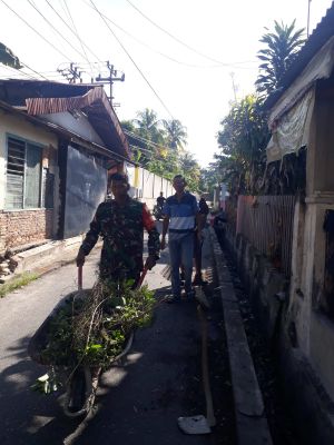 Babinsa Bersama Pramuka dan Warga Goro Bersihkan Selokan