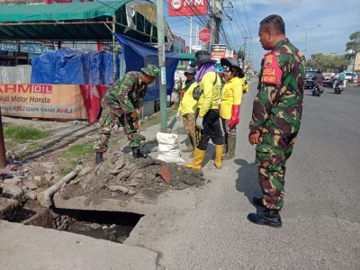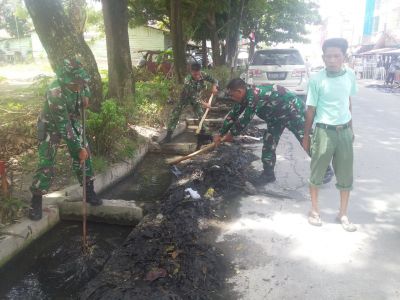 Serka TM Sihite  Goro Bersama Warga Bersihkan Drainase