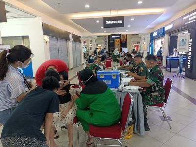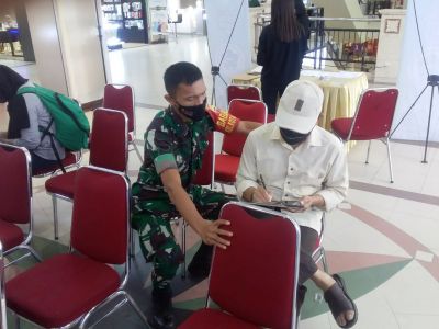Babinsa Monitoring Serbuan Vaksinasi di Mall Pekanbaru