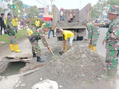 Babinsa Bersama Pramuka dan Warga Goro Bersihkan Selokan
