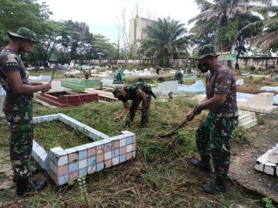 Babinsa Bersama Warga Goro Bersihkan Tempat Pemakaman Umum
