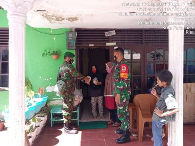 Lagi, Babinsa Sukaramai Distribusikan Nasi Bungkus ke Warga